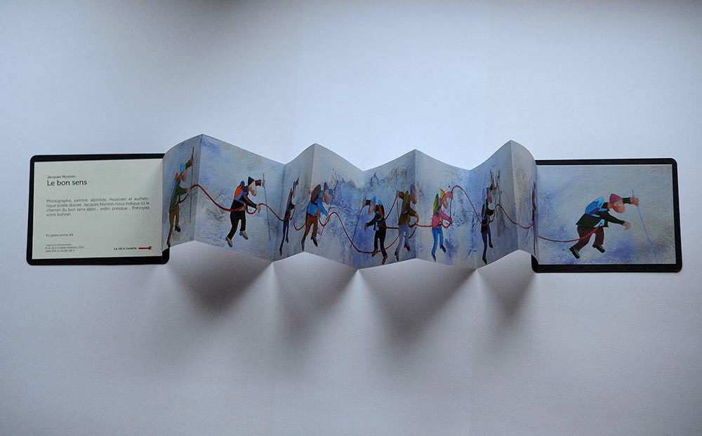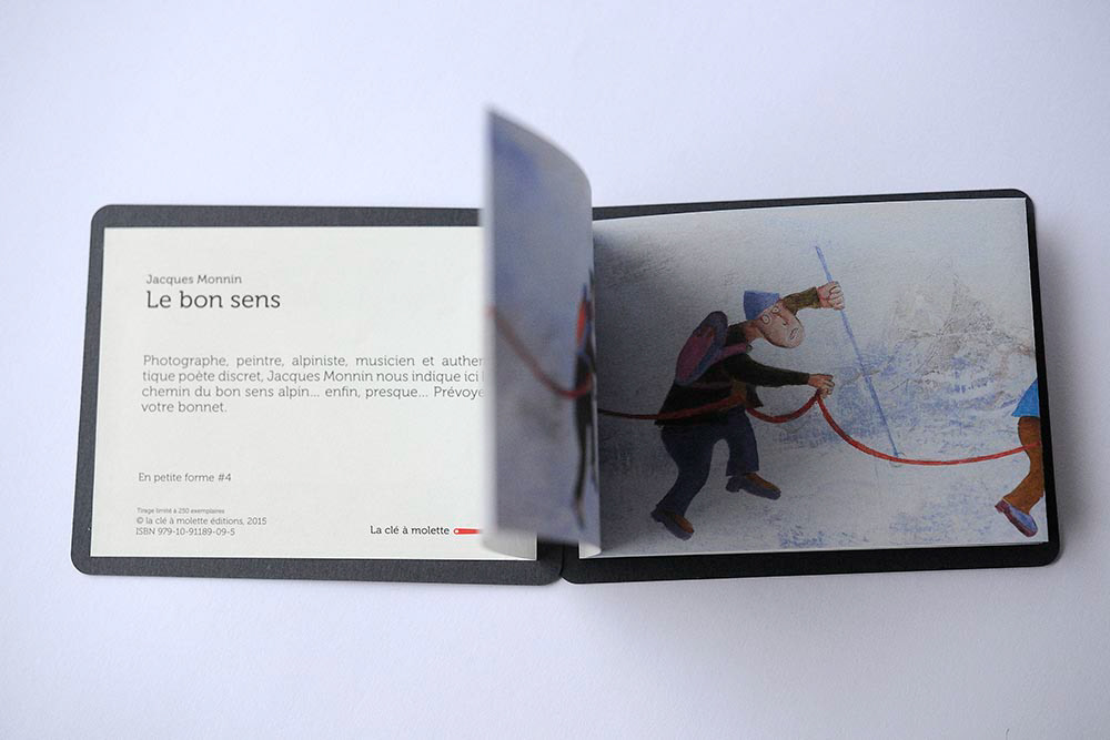Les Editions La Clé à Molette ont publié en 2015 mon livre-accordéon, un leporello intitulé « le Bon sens » présentant une fresque que j’ai illustrée en peinture dans un univers de poésie minimaliste.